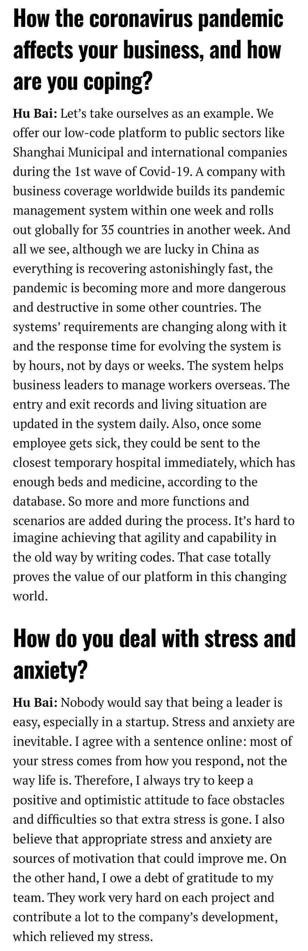 2021年年初,,,,,,,,爱湃斯科技CEO胡柏受邀接受法媒Startup.info的专访,,,,,,,,,,与Startup info的读者分享了自己的创业经历、、、、、、、以及低代码平台VIVO钱包的创新之处。。。。。。。。。。。。。。