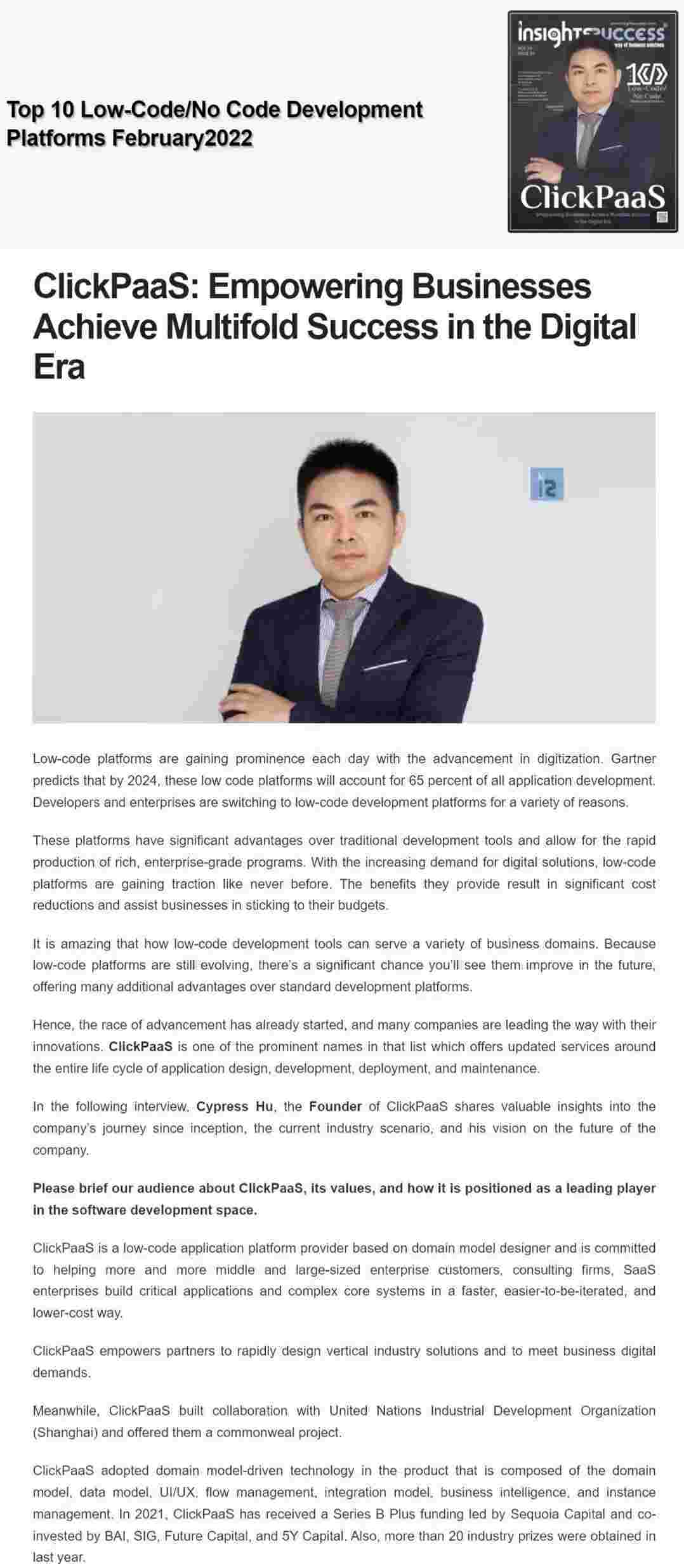 2022年年初,,,,,,,VIVO钱包入选外媒Insights Success低代码/无代码开发平台 Top10,,,,,,,,,,,,创始人、、、、、、、CEO胡柏受邀接受专访并荣登封面人物,,,,,,,,他与Insights Success的读者分享了VIVO钱包成立的初心、、、、、、发展历程、、、、、、、、、、、、、当前的行业发展趋势以及他对公司未来的展望。。。。。。。。。。。。